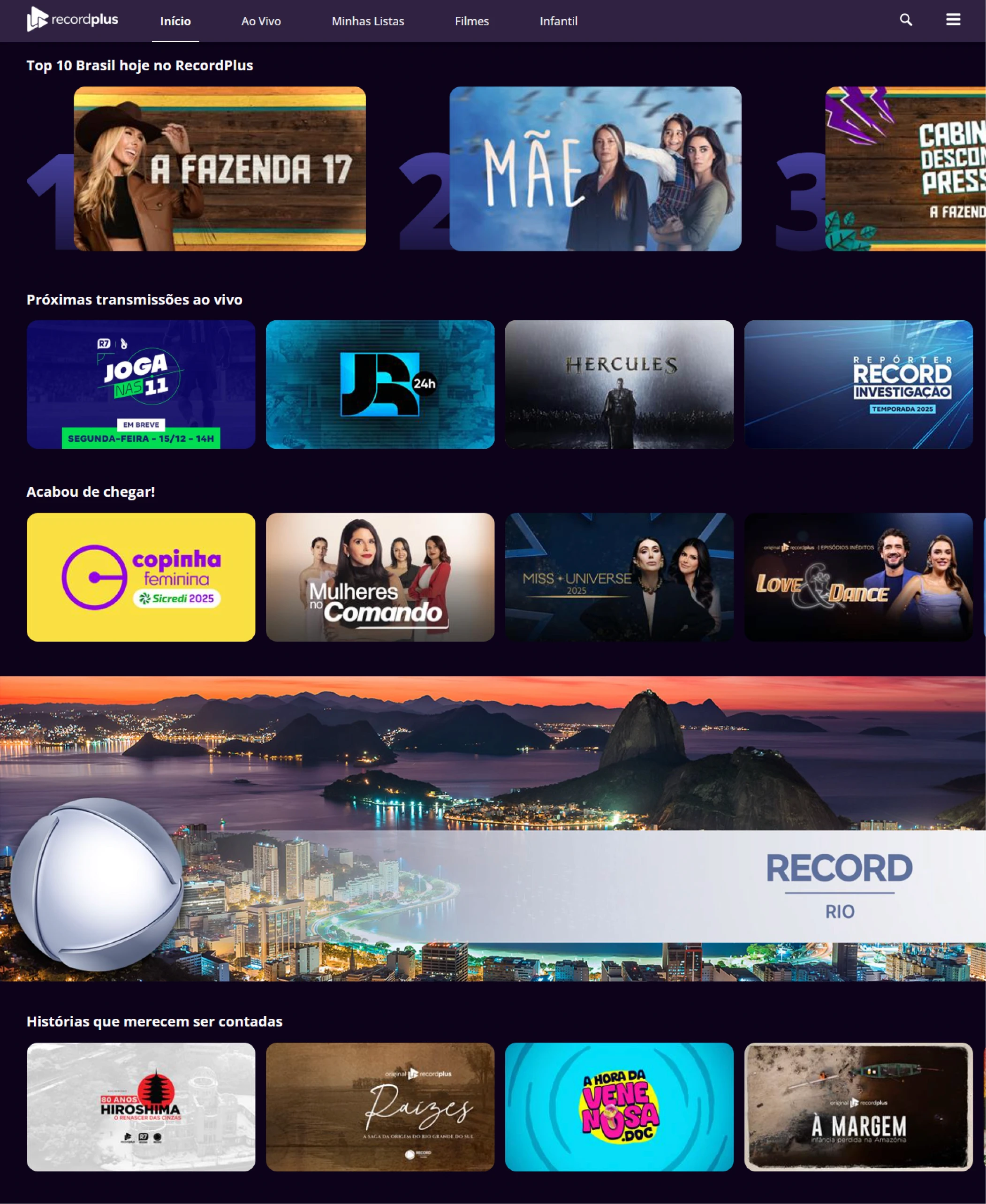 RecordPlus is the official streaming platform of Record, offering both live and on-demand access