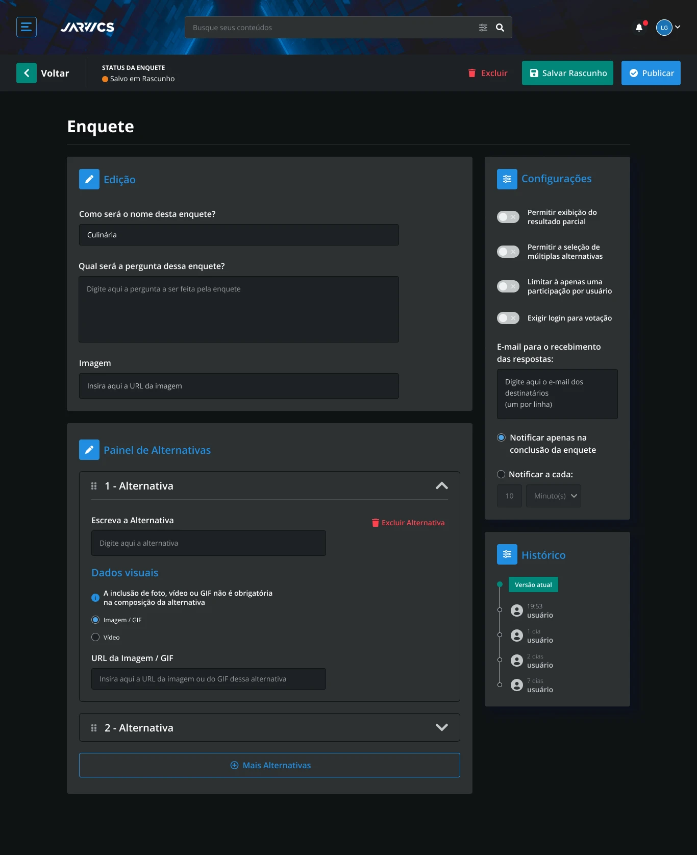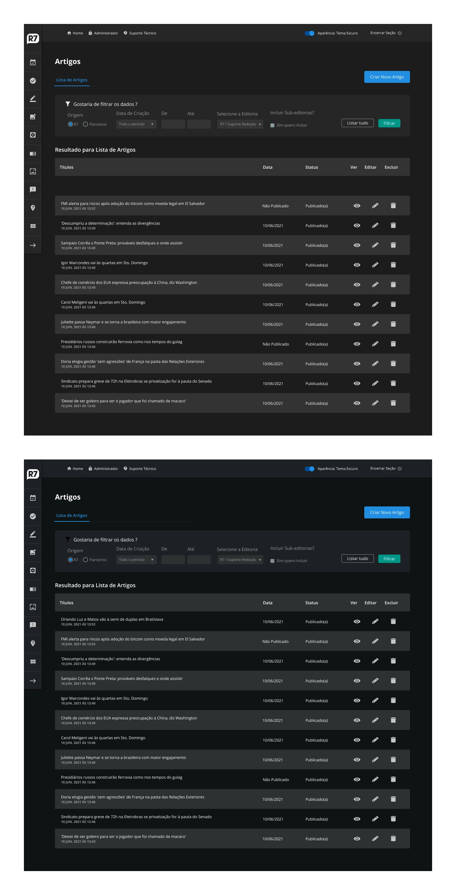 Jarvics is the internal content management system behind the entire R7 ecosystem. This is one of the projects where I've been heavily involved since its initial stages, through benchmarking, color studies, accessibility, visual identity, and more. Since we work very closely with the editors, journalists, and technical staff who operate Jarvics, we are constantly able to refine its functionalities through deep usability tests, ensuring that the CMS supports the speed and complexity of live, large-scale news operations like those published by R7.