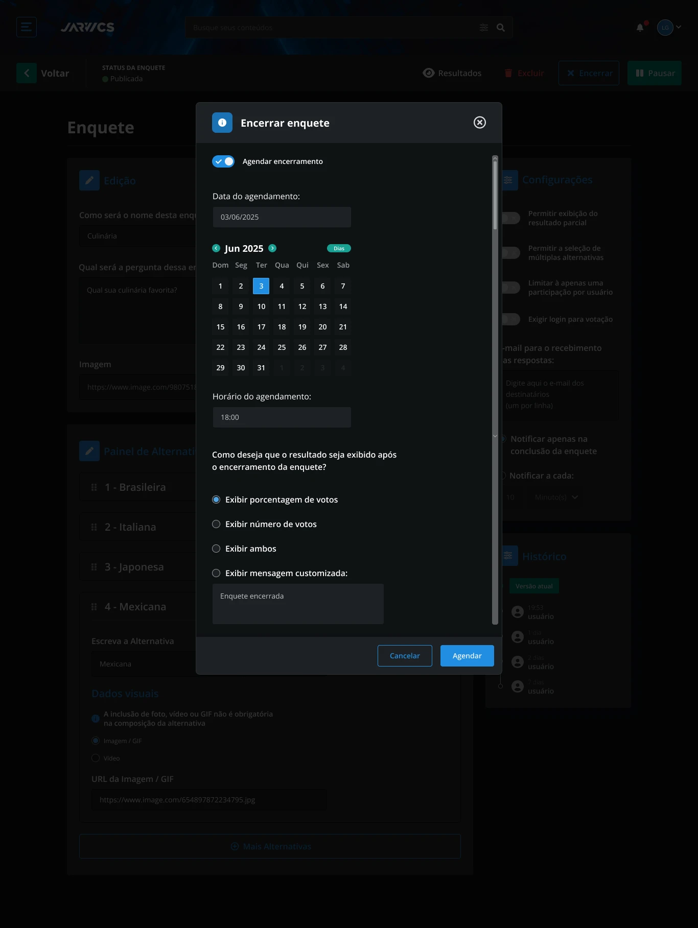The poll’s end time can be scheduled, and a custom message can be set to inform viewers when the poll has concluded.