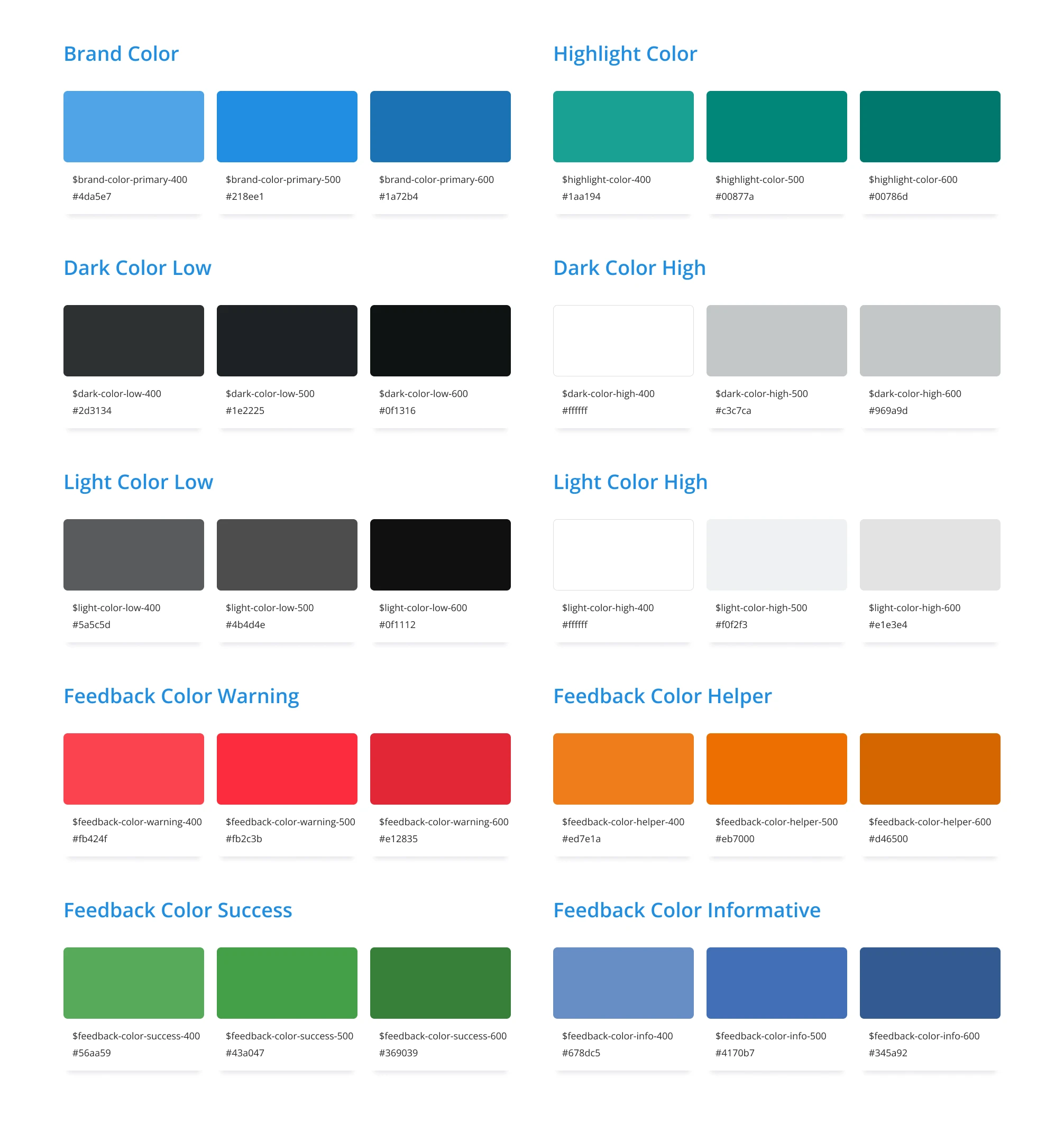 Early in development, I was tasked with the creation of the entire color palette for the design system. Since dark mode was widely preferred over light screens by end users, an extensive benchmarking was initiated to understand how dark tones behave on similar products.