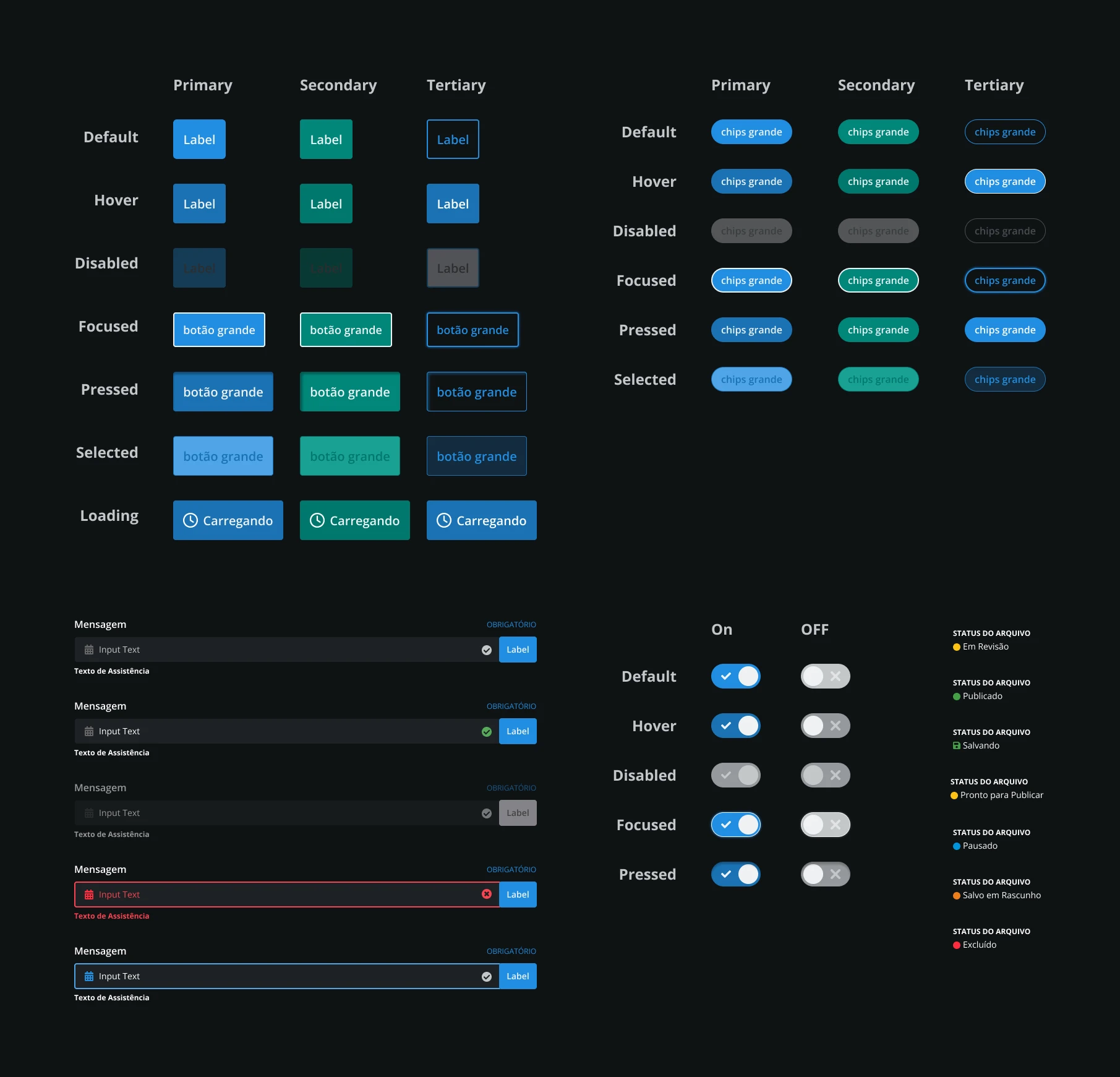 With this in hand, along with some initial sketches, we defined the color palette and some essential components to shape the design system.