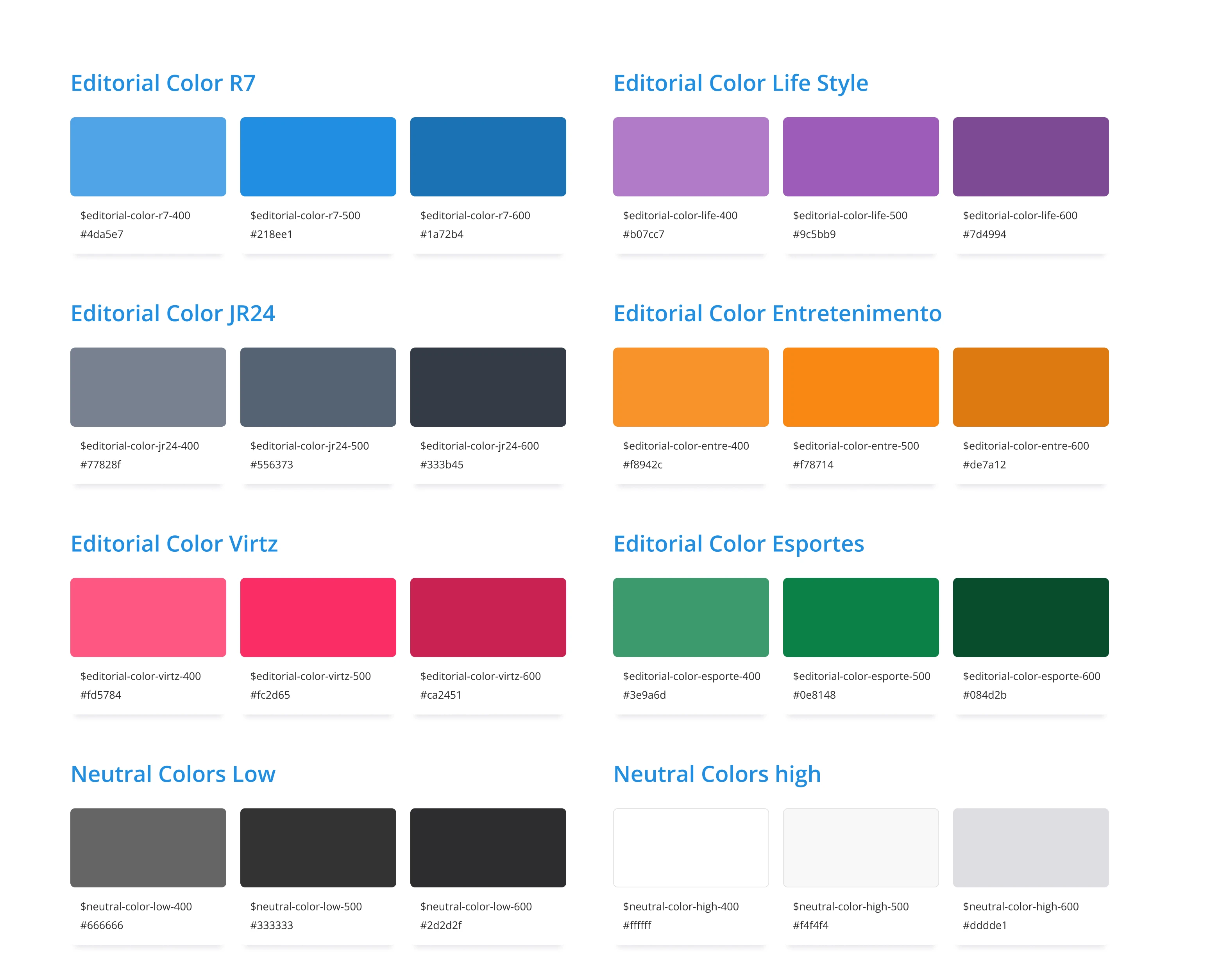 These are some of the sections within the R7 website. It's a continuous effort to find elements that cater to all of them, in order to maintain a concise design system, while still engaging the diverse audiences interested in each section.