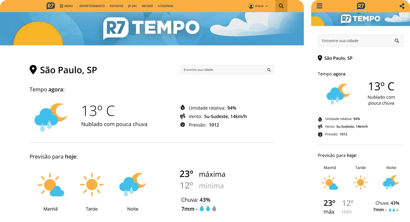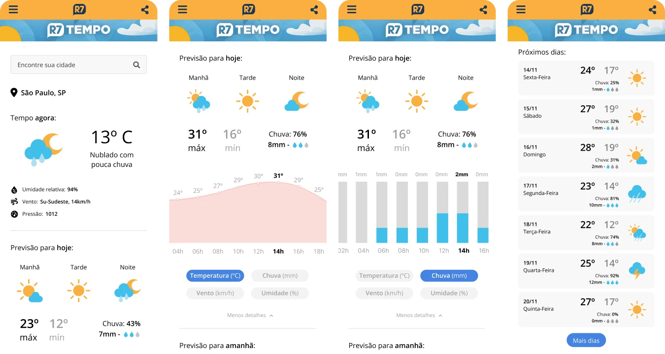 R7 Tempo is the weather platform of R7, providing forecast information for cities across Brazil.