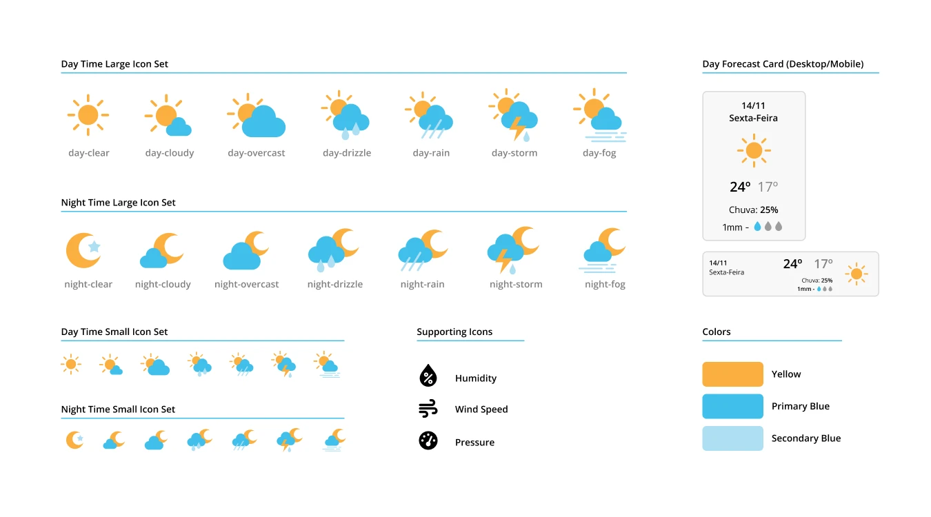 R7 Tempo is based on the R7 Design System, maintaining consistency and familiarity across the ecosystem. As a distinct product, new components were created to support its specific needs. A dedicated icon set was curated to represent weather conditions clearly while meeting accessibility standards.
