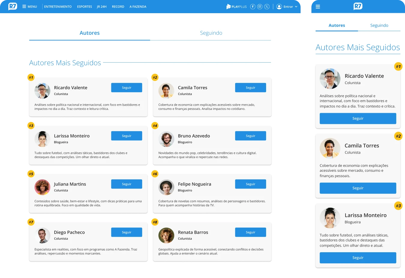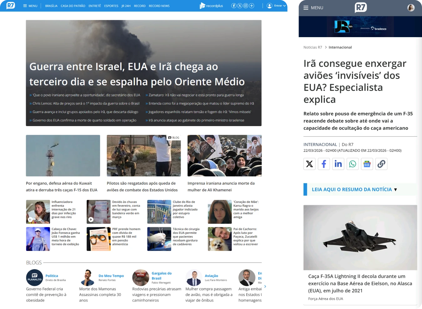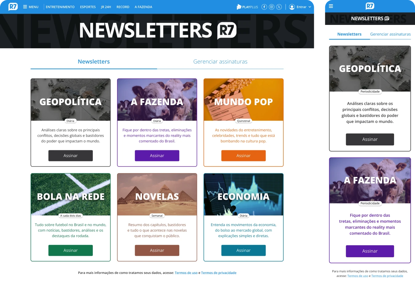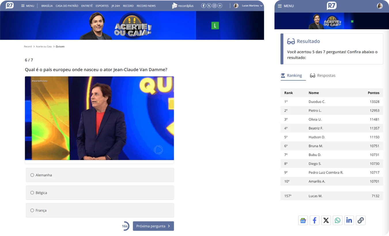 R7 is one of the largest news websites in Brazil, reaching over 70 million monthly unique users according to Comscore. It covers a wide range of topics, including politics, economy, sports, health, lifestyle, and pop culture, as well as content related to Record TV programs.