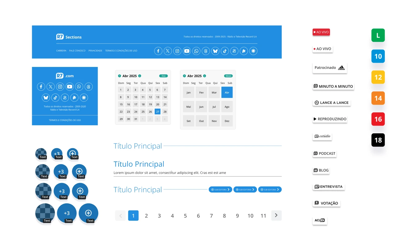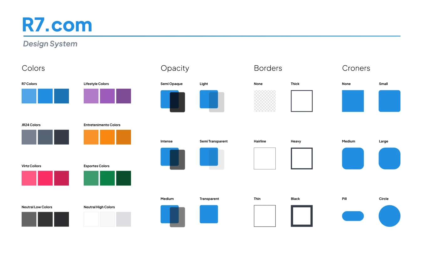 R7 includes multiple sections and sub-products, each targeting different audiences, from younger users consuming entertainment content to older audiences following news and TV programs. This requires a scalable design system that maintains consistency while allowing flexibility for different contexts and user needs.