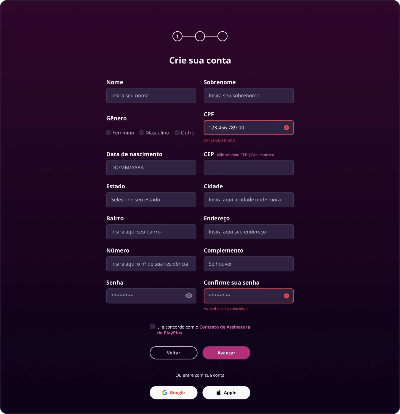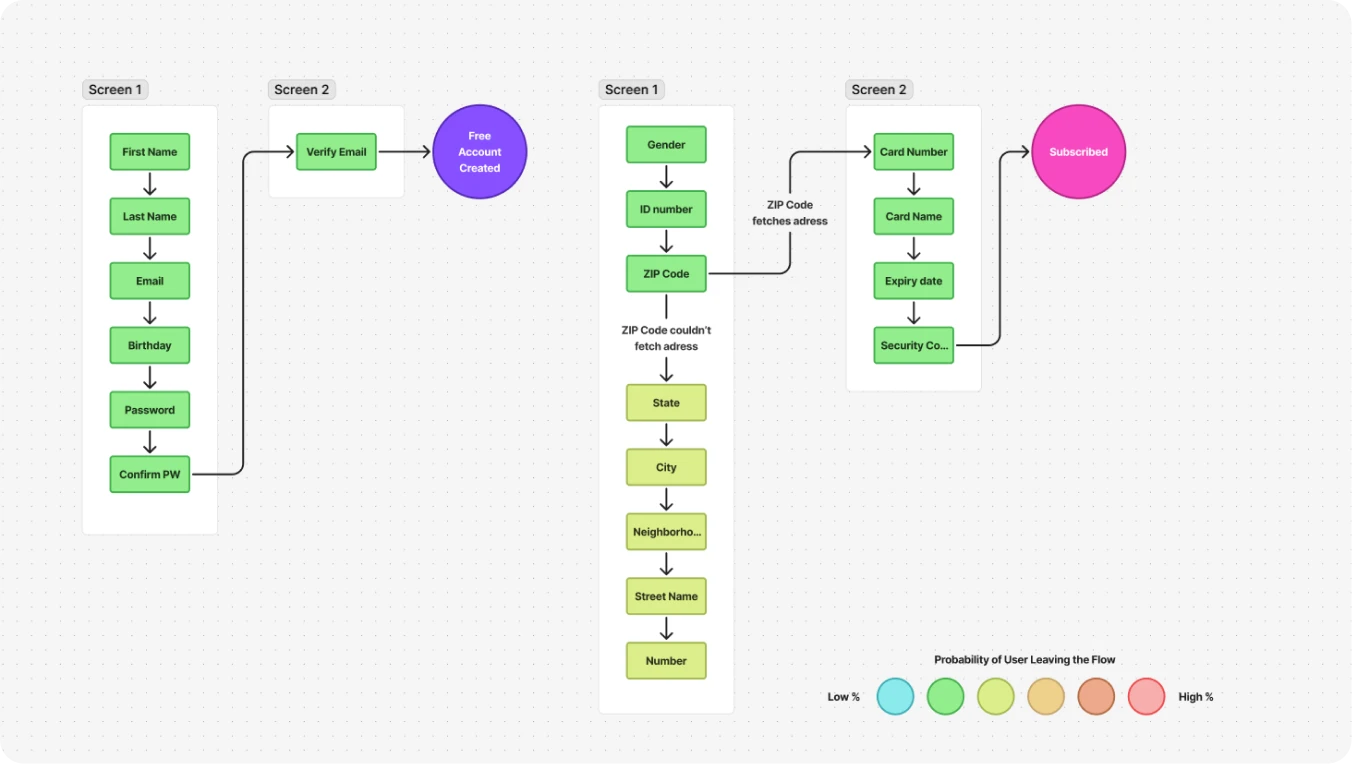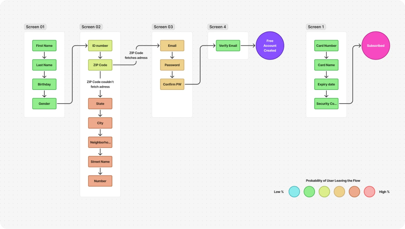 To address this, the flow was simplified to require only essential information at first, allowing users to access content faster. Additional data would only be requested later, when subscribing to a paid plan.